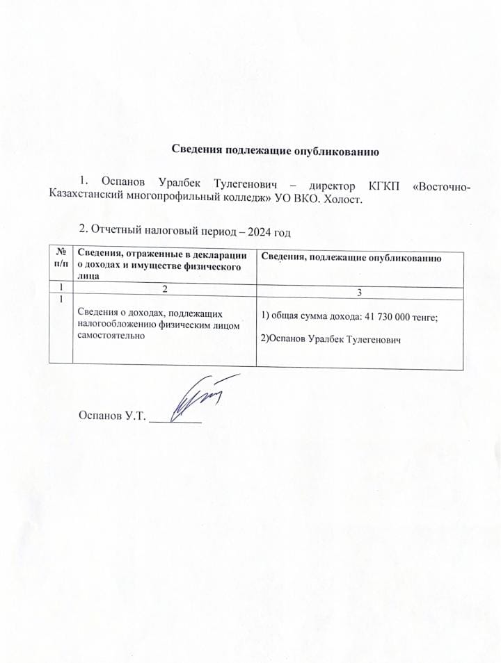 — Оспанов Уралбек Тулегенович – колледж директоры