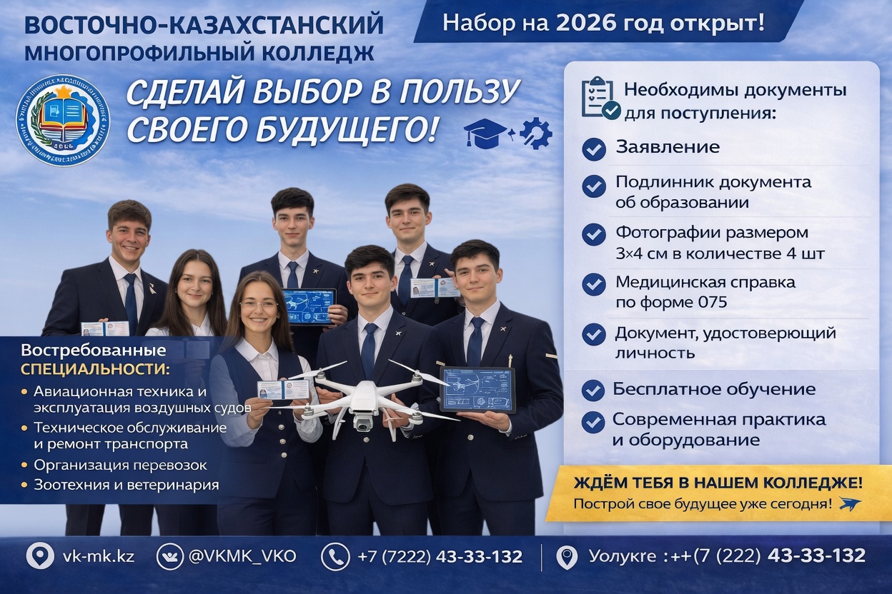 2025 год юбилейный год, нашему колледжу исполняется — 80 лет! Восточно-Казахстанский многопрофильный колледж является опорным колледжем и базой по подготовке кадров технического и профессионального образования для сельскохозяйственной отрасли региона. Коллектив учебного заведения работает над модернизацией и укреплением материально-технической базы и подготовкой конкурентоспособных специалистов по наиболее востребованным профессиям на рынке труда.