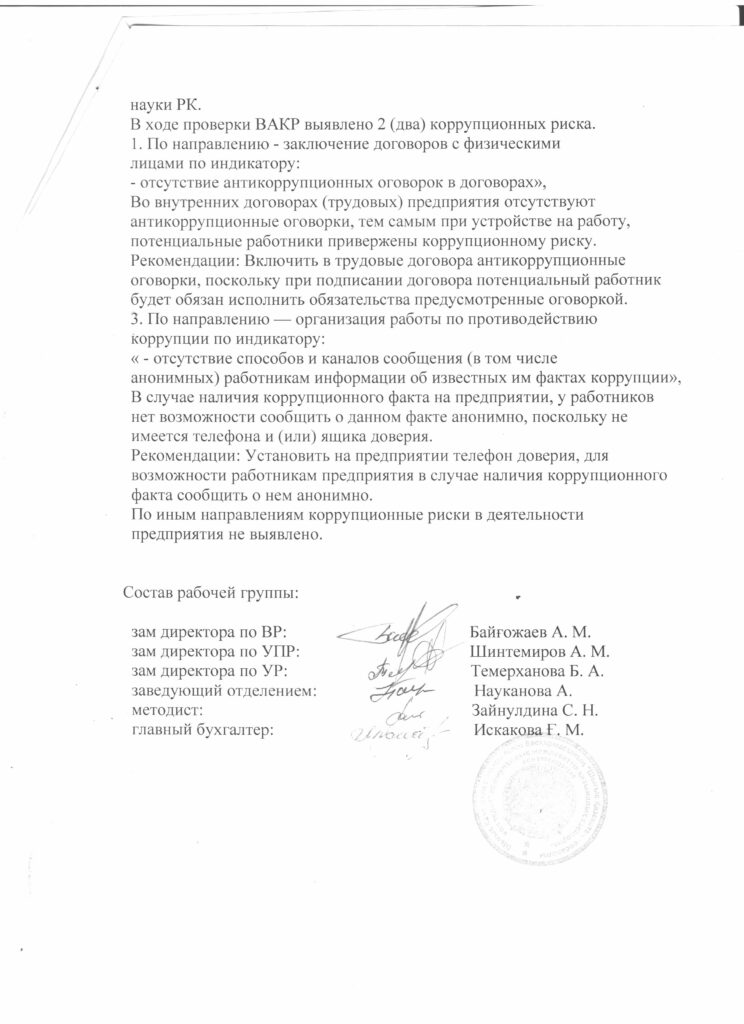 2. Выявление коррупционных рисков в организационо-управленчиской деятельности КГКП«Восточно-Казахстанский многопрофильный колледжа» .